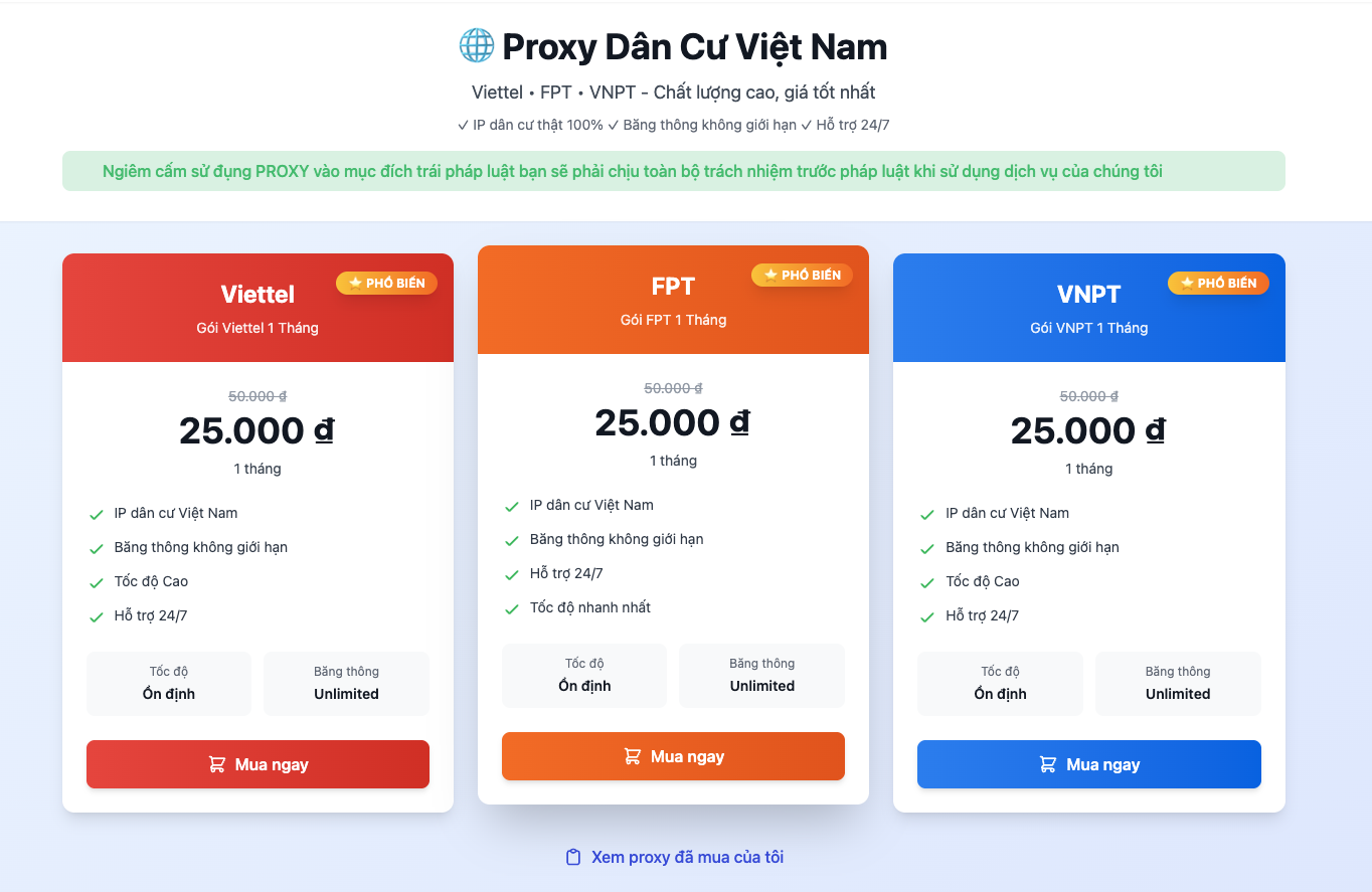 Dịch vụ cung cấp proxy tốc độ cao, ổn định cho các ứng dụng và trình duyệt.